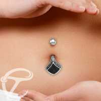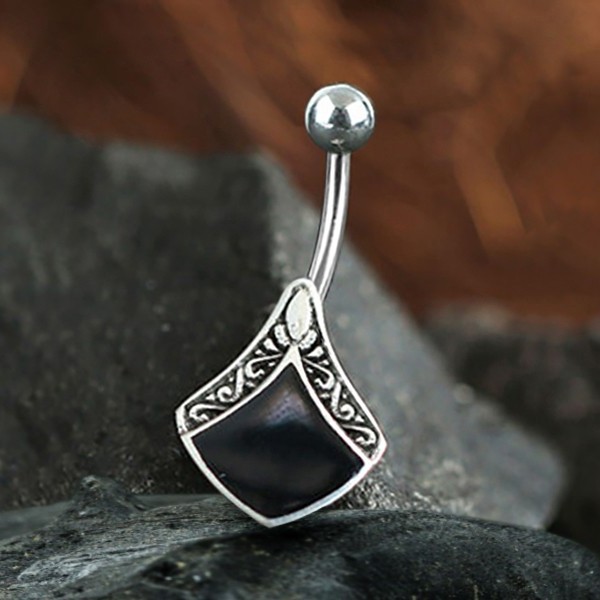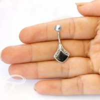 Description: Silver and 316L Steel navel bar with black of pearl