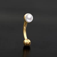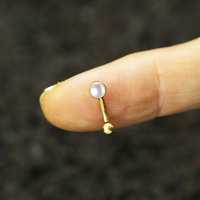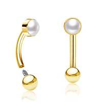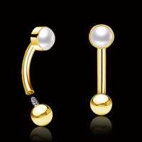 This PVD gold-coated eyebrow piercing is well liked by our wholesale steel body jewelry customers. It is just a curved steel piercing bar set with a synthetic white pearl, simple but elegant to be worn as either rook piercing or eyebrow jewelry.
