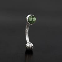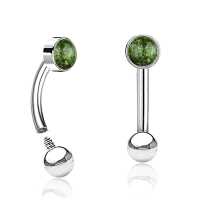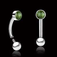 This style of steel eyebrow piercing is very popular among our wholesale steel body jewelry customers. Our line of curved steel piercing bars featuring semi precious stone such as this highly polished African jade cabochon, are simple but stunning to be worn as either rook piercing or eyebrow jewelry.
