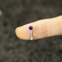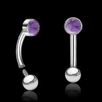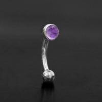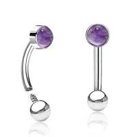 This type hand welded eyebrow piercing is very popular among our wholesale steel body jewelry customers. Our line of curved steel piercing bars featuring semi precious stones such as this shiny amethyst cabochon, are simple yet very classy to be worn as rook piercing and eyebrow jewelry.