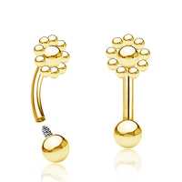 A hand crafted PVD gold-plated steel eyebrow barbell that can double as a rook piercing. Hand welded using only high quality surgical steel piercing materials found in our steel body jewelry workshop.