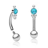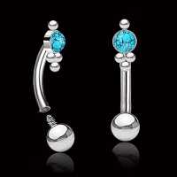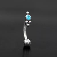 This 316L steel eyebrow piercing jewelry is carefully set with a synthetic turquoise cabochon. Our hand welded 1.2mm curved barbells are stocked in two sizes to accommodate being worn as classic eyebrow piercing or as rook piercing in the ear.