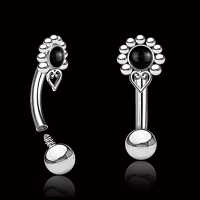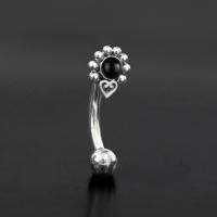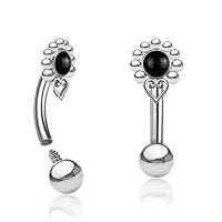 An adorable piece of eyebrow piercing jewelry that can make for a solid rook ear piercing. Produced from a surgical steel 1.2mm curved piercing barbell thats been combined with several steel piercing balls and a steel heart and set with a black onyx cabochon.