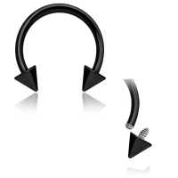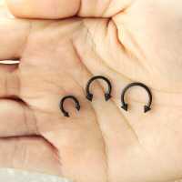 A plain simple 316L PVD matte black steel circular barbell piercing with double spikes. Usually worn as eyebrow piercing but can also be used in the nose as a septum piercing or in the ear as conch piercing and helix piercing.