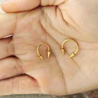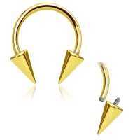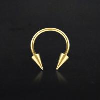A plain simple 316L PVD gold coated steel circular barbell piercing with two extra long spikes. Very popular as eyebrow piercing but also worn in the nose as a septum piercing or in the ear as conch piercing and helix piercing.