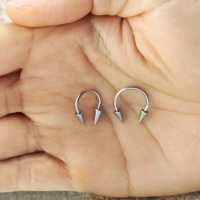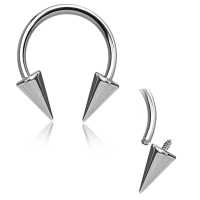 A plain simple 316L steel circular barbell piercing with two extra long spikes as add ons. These circular steel barbells are popular to wear as eyebrow piercing, conch piercing as well as helix piercing.