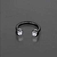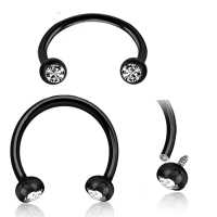 A common 316L PVD black coated steel circular barbell piercing, two balls with clear zirconia inlay as attachments. Popular as eyebrow piercing but also used in the nose as a septum piercing or in the ear as conch piercing and helix piercing.