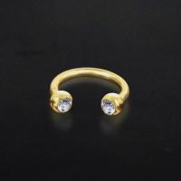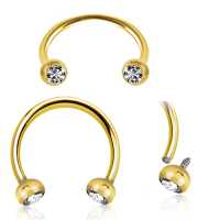 A plain simple 316L PVD gold coated steel circular barbell piercing, two balls with clear zirconia inlay as attachments. Popular as eyebrow piercing but also worn in the nose as a septum piercing or in the ear as conch piercing and helix piercing.