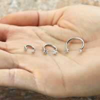 These prong set clear zirconia crystals is what gives this circular barbell an exclusive look. If you are looking for a big wholesale steel piercing selection of helix piercing, conch piercing as well as eyebrow piercing and septum piercing you have found the right place.