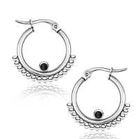This classic looking steel earring with a black resin inlay have been hand welded by our skilled artisans using a steel piercing cluster technique. In our steel piercing collection you can find a very big selection of steel jewelry.
