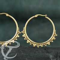 A tribal designed steel earring welded to perfection in our jewelry workshop with a steel cluster piercing method then carefully PVD gold coated. We offer a huge range of steel cluster body jewelry in our online steel piercing wholesale collection.