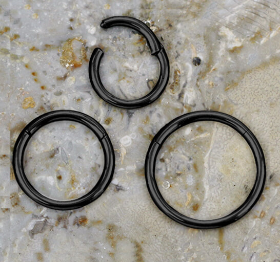 Steel Piercing XH 001B - 316L Stee PVD Black hinged segment ring is sold