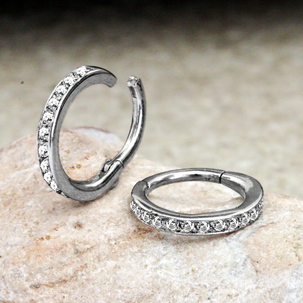 Description: 316L Steel hinged segment ring with crystals
