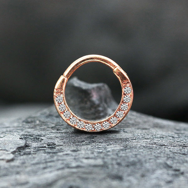 Description: 316L Steel hinged segment ring with crystals