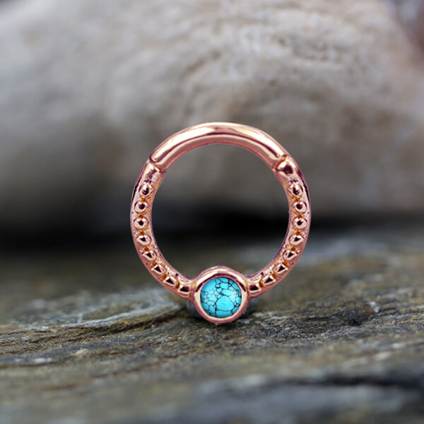 Steel Piercing XH 014R TQ - Rose Gold PVD, 316L Steel, turquoise is sold