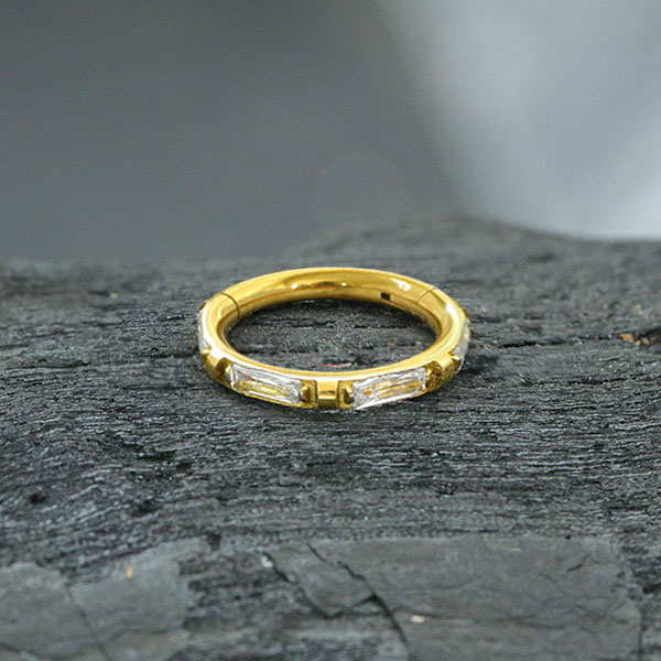 Steel Piercing XH 030G CZ - Gold PVD, 316L Steel, rectangle clear crystal is sold