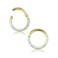 Steel Piercing XH 032G OW - Gold PVD 316L Steel, White Opal is sold