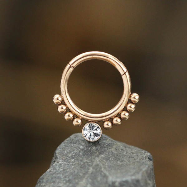 Steel Piercing XH 034R CZ - Rose Gold PVD 316L Steel, Clear crystal is sold