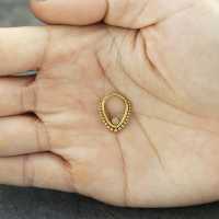 This teardrop shaped PVD gold plated hinged segment ring is set with a rose colored cat eye cabochon. Hand welded by our steel jewelry artisans using a steel piercing cluster procedure. This type of steel body jewelry is perfect to be used as daith piecing, rook piercing as well as septum piercing.