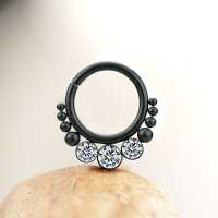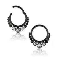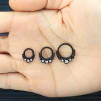 These Matte black PVD plated steel hinged segment rings have been created by our steel cluster piercing welders to produce some truly unique steel body jewelry designs. Smooth to be worn as daith piercing, tragus piercing as well as septum piercing, so if you are looking to improve your steel body piercing wholesale selection then you found the right place.