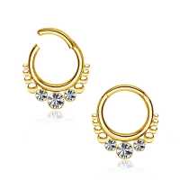 Steel Piercing XH 135G CZ - PVD Gold Steel hinged segment ring is sold