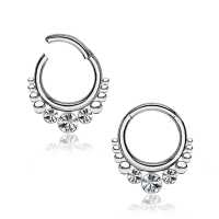 These 316L steel hinged segment rings have been hand worked by our steel cluster piercing welders to create some truly unique steel body jewelry designs. Ideal to be worn as snug piercing, tragus piercing as well as septum piercing, so if you are looking to improve on your steel body piercing wholesale assortment then look no further.