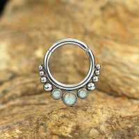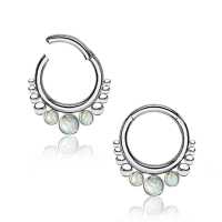 These 316L steel hinged segment ring with synthetic white opals have been hand made by our steel cluster piercing welders to produce a truly stunning steel body jewelry design. Absolutely perfect to be used as snug piercing, tragus piercing as well as septum piercing, so if you are wanting to improve on your steel body piercing wholesale assortment then look no further.