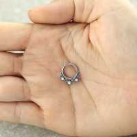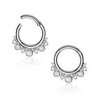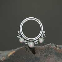 Another of our hand made 316L steel hinged segment rings expertly designed and produced by our steel cluster piercing welders using little steel hearts and synthetic white opals. As always we are inspired to create stunning steel body jewelry designs that can be worn as tragus piercing, daith piercing as well as septum piercing. Welcome to our amazing online shop, the one stop for wholesale steel body piercing jewelry.