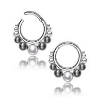 Multi colored hinged steel segment ring piercing, with a combination of black and white synthetic pearls. Another showcase of innovative steel body piercing jewelry from our extensive wholesale body jewelry collection.