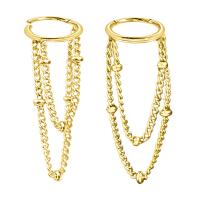 A PVD gold plated hinged segment ring outfitted with a cool steel chain piercing. Awesome to be worn as a lower helix piercing and to combine with other steel piercing jewelry selections from our wholesale steel body jewelry collection.