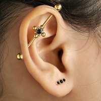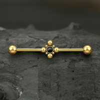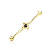 Yet another one of a kind construction piercing, PVD gold plated and set with a black onyx cabochon. We take great comfort in creating most of our steel piercing jewelry in our own steel jewelry facility. Make sure to search through all our unique industrial piercing designs in our steel body jewelry wholesale selection.