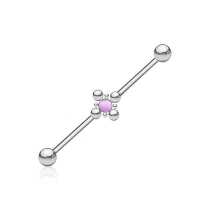 A stunner of a construction piercing, made from surgical steel piercing bars and balls welded together and set with a purple cat eye cabochon. We take satisfaction in creating most of our steel piercing jewelry in our own steel jewelry facility. Make sure to discover our unique industrial piercing designs available in our steel body jewelry wholesale selection.
