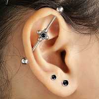 Yet another one of a kind construction piercing hand-welded and set with a black onyx cabochon. Most of our steel piercing jewelry in our own steel jewelry facility which ables us to guarantee the workmanship on all our steel body jewelry. Make sure to search through all our unique industrial piercing designs in our steel body jewelry wholesale selection.
