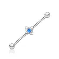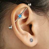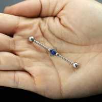 In our extensive wholesale steel body jewelry collection we have a whole sub-category dedicated to our exclusive industrial piercing barbells. This scaffold piercing design is made from steel piercing barbells, a couple of steel hearts and a synthetic blue opal all welded together in our steel jewelry workshop.