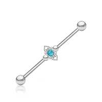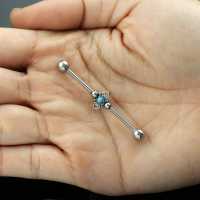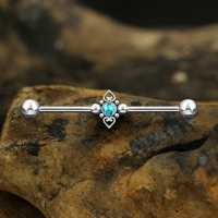 Chaotic Trading's wholesale steel body jewelry collection have a whole sub-category displaying our exclusive construction piercing barbells. This industrial piercing design is made from steel piercing barbells, a couple of steel hearts and a synthetic turquoise cabochon all welded together in our steel jewelry factory.