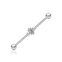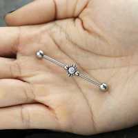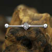 This industrial piercing design will come out like a sparkling star in your upper ear. We have adorned this surgical steel construction piercing with tiny little spikes and piercing balls and set with a sparkling zircon crystal. Available in many different colors in our wholesale steel body piercing collection.