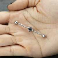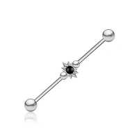 This industrial piercing barbell design will stand out like a sparkling star in your upper ear. Created using small little steel spikes and piercing balls and set with a black onyx cabochon cabochon this makes for a great construction piercing. Available in many sizes and color options in our wholesale steel piercing collection.