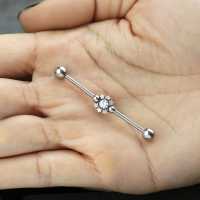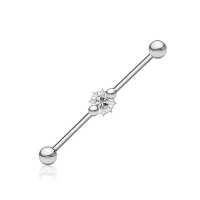 This industrial piercing barbell is literally the star of our industrial piercing collection. Welded together with six small steel stars and finished off with a clear zirconia crystal. Exclusively designed scaffold piercing for Chaotic Tradings wholesale steel body jewelry collection.