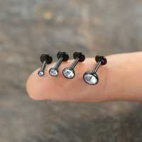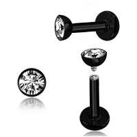 Another basic black PVD plated labret piercing design with a clear zirconia crystal. We offer lots of labret piercing jewelry as well as other steel body piercing in our extensive steel body jewelry wholesale collection.