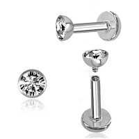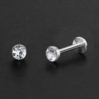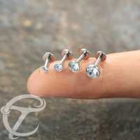 A very straight forward labret piercing design with a dome shaped cup and a clear zirconia crystal. Popular to use as lip piercing as well in the ear as tragus piercing and helix piercing.