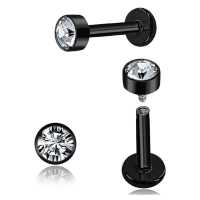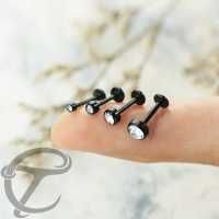This black PVD coated crystal labret piercing is a basic staple in any serious steel piercing jewelry collection. Great to wear as lip piercing jewelry such as monroe piercing and meduza piercing but also popular to use in the ear.