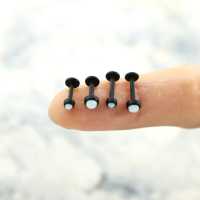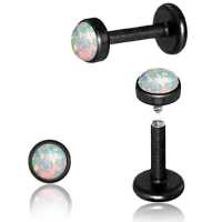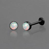 This is a PVD matte black coated 316L steel piercing labret with a synthetic white opal cabochon. This labret piercing is available in many sizes and colors in our wholesale steel body jewelry collection.