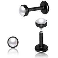 This is a PVD black plated 316L steel piercing labret with a synthetic white pearl cabochon. This labret piercing is available in many sizes and colors in our wholesale steel body jewelry collection.