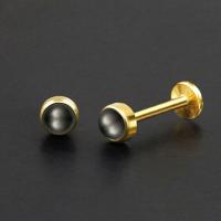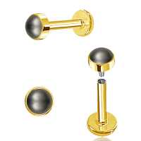 This is a PVD gold plated 316L steel piercing labret with a synthetic black pearl cabochon. This labret piercing is available in many sizes and colors in our wholesale steel body jewelry collection.