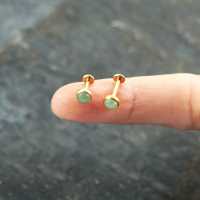 This is a PVD gold coated 316L steel piercing labret with a Green Jade cabochon. This labret piercing is available in many sizes and colors in our wholesale steel body jewelry collection.