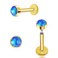 Steel Piercing XL 007G OB - 316L Steel PVD Gold Labret, blue opal is sold
