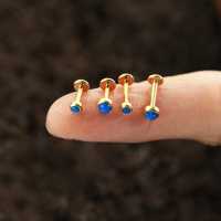 This is a PVD gold coated 316L steel piercing labret with a synthetic blue opal cabochon. This labret piercing is available in many sizes and colors in our wholesale steel body jewelry collection.