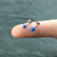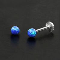 This cool labret piercing is decorated with a blue synthetic opal ball and it looks great. Available in 3 and 4mm this steel labret is perfect to wear in the ear as tragus piercing, upper lobe piercing and flat piercing.