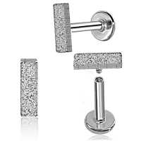 A rectangular labret piercing design that has been treated with sand-blasting method to create a unique texture. We recommend this to be worn in the ear as flat piercing, upper lobe piercing or tragus piercing. search through our huge wholesale steel piercing jewelry collection for more exclusive labret piercing jewelry at fair prices.