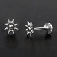This little steel labret spike star has a real punk jewelry feel to it. Hand made from 316L hypo allergenic steel by using a simple ball labret piercing and 8 tiny steel spikes. Great as lip piercing, tragus piercing as well as flat piercing.